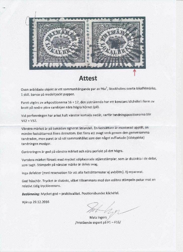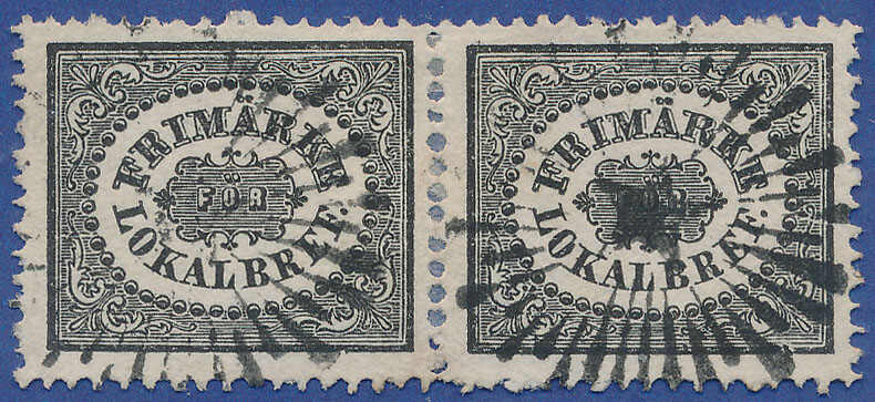 | Zusatzinformationen und Suchstichworte: | Postiljonen 239. Int. Briefmarken Auktion 26. - 29. September 2023 Los 1234 Schweden Lokal Marke Very beautiful pair of 1 Sk. Bco black on medium thick paper, clear print in pos. 16 & 17. Each with a beautiful star canc. F=16.500+. Cert. Ingers. VERY FINE - SUPERB. Ausruf 400,00 EUR |