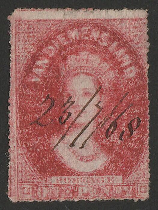 | Zusatzinformationen und Suchstichworte: | Status International Auktion 383 - Briefmarken und Briefe 14. September 2023 Los 1497 Tasmanien 1863-69 QV Chalon 1d carmine, wmk doubled-lined 1, serrated perf about 19, design partially DOUBLE. F-VF F/C 23/7/68 m/s. SG 118(var) £400 as normal U alone. Very rare. 2019 Ceremuga photo cert. Ausruf 200,00 AUD |