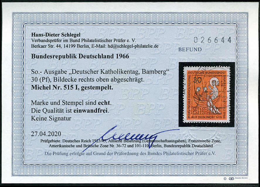 | Zusatzinformationen und Suchstichworte: | AAK Phila GmbH Los 1000007032 Bundesrepublik Deutschland 30 Pf Katholikentag m. PF "Bildecke abgeschrägt", rundgestpl. Luxus m. einwandfreiem Befund Schlegel BPP Festpreis 159,99 EUR |