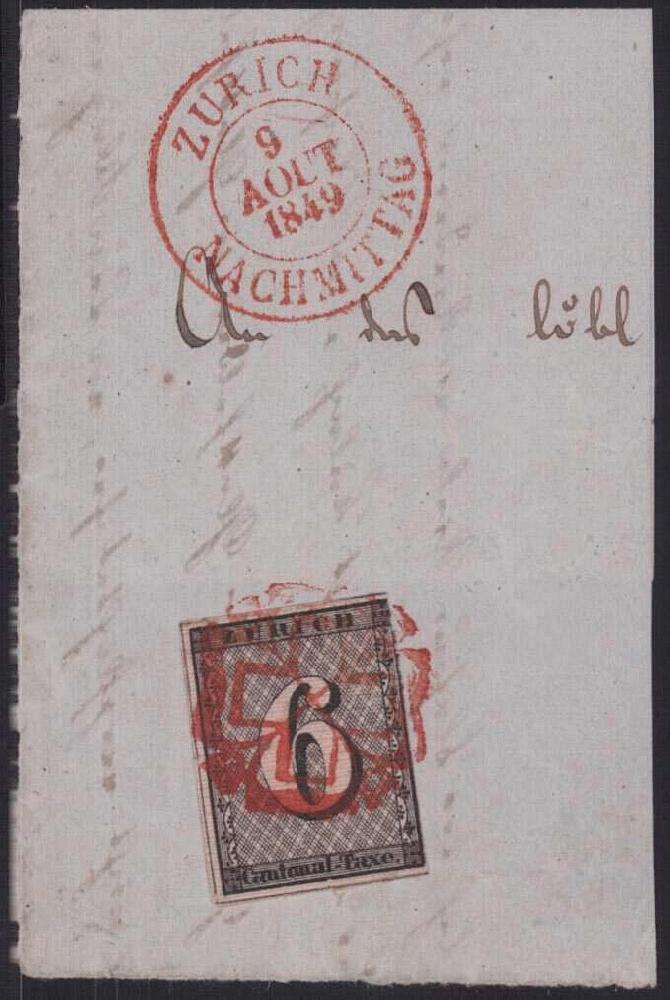 | Zusatzinformationen und Suchstichworte: | 45. Jean-Paul Bach Auktion 23. September 2023 Los 562 Kanton Zürich 1843, ZÜRICH 4 RP., WAAGERECHTER UNTERDRUCK Type III, sehr farbfrisch, 3 Seiten breitrandig, rechts unten berührt, saubere ZÜRCHER-Rosette auf das schöne Briefstück übergehend, Aufgabe-Stempel ZÜRICH 9 AOUT 1849, sehr gut präsentierend. Ausruf 280,00 CHF |