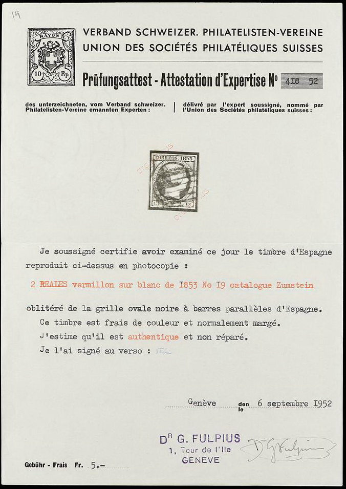 | Prüfer: | Fulpius, George (SBPV / ASEP (Schweizerischer Briefmarken-Prüfer-Verband)) |
