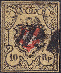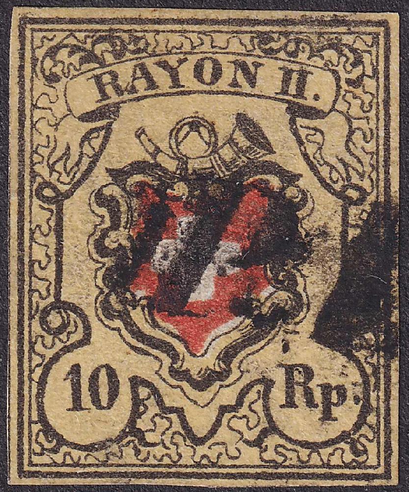 | Zusatzinformationen und Suchstichworte: | Luzernerraute Webshop Los 0000107725 Rayon II, gelb, ohne Kreuzeinfassung (STEIN A 2) T.12 A2-RO, P.D. in schwarz, breitrandige Marke mit leichten Doppel-Druck-Spuren (Schmitzdruck) oben rechts, sehr gute Erhaltung mit Befund Estoppey. Festpreis 280,00 CHF |