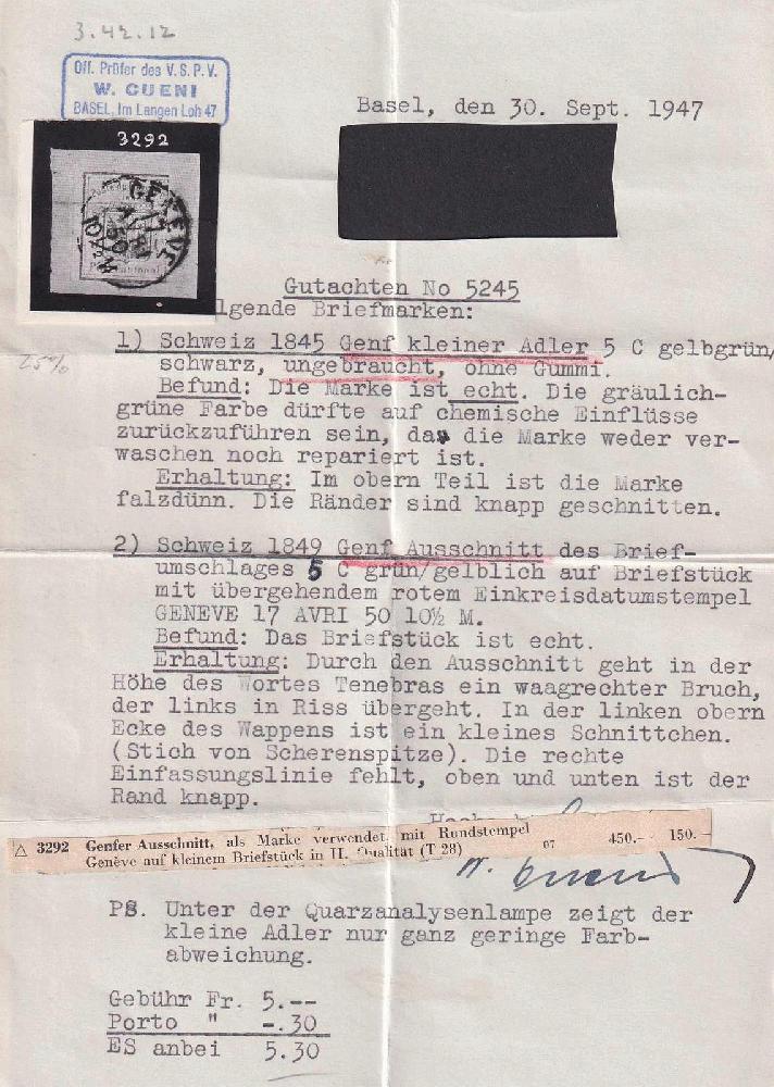 | Prüfer: | Cueni, Werner (SBPV / ASEP (Schweizerischer Briefmarken-Prüfer-Verband)) |