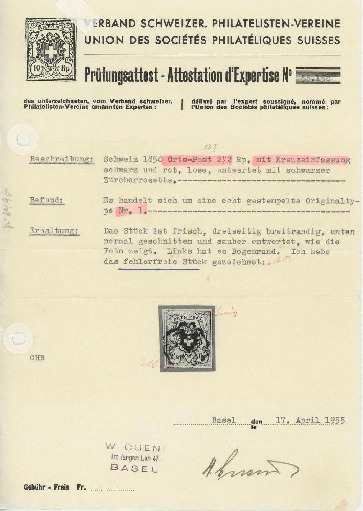 | Prüfer: | Cueni, Werner (SBPV / ASEP (Schweizerischer Briefmarken-Prüfer-Verband)) |