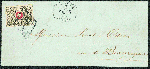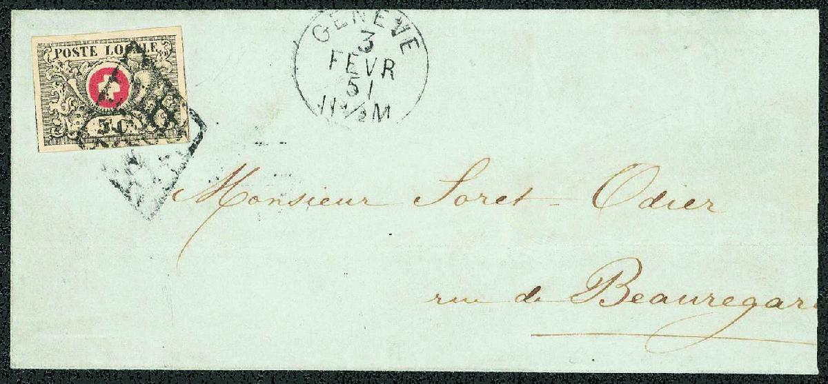 | Zusatzinformationen und Suchstichworte: | Gert Müller 119. Auktion 24. - 26. August 2023 Los 3535 Schweiz 5 C. rot/schwarz, sogenannte "WAADT", farbfrisches, allseits breitrandiges Luxusstück mit Teilen der Schnittlinien auf sehr schönem kleinformatigem Brief, rechts gering verkürzt, mit sauber und klar aufgesetztem Rautenstempel und beigesetztem ebenso klarem K1 "GENEVE 3.FER.51" nach Beauregard. Ausruf 3.000,00 EUR |