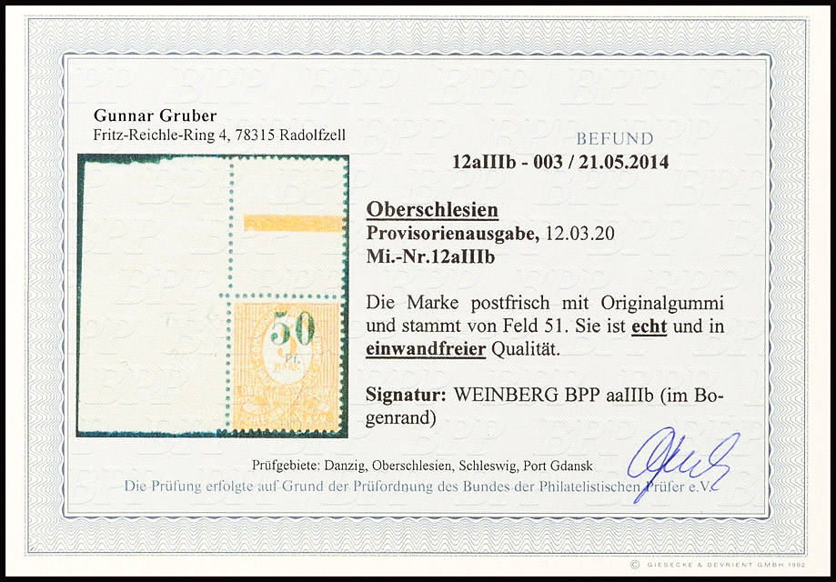 | Prüfer: | Gruber, Gunnar (BPP (Bund Philatelistischer Prüfer)) |