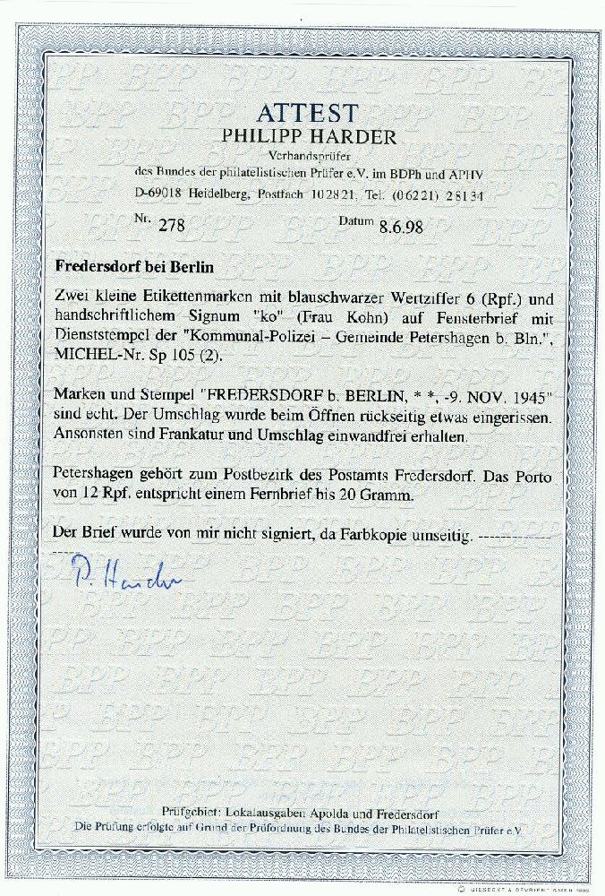 | Prüfgebiet: | Deutsche Lokalausgaben 1945 Fredersdorf |