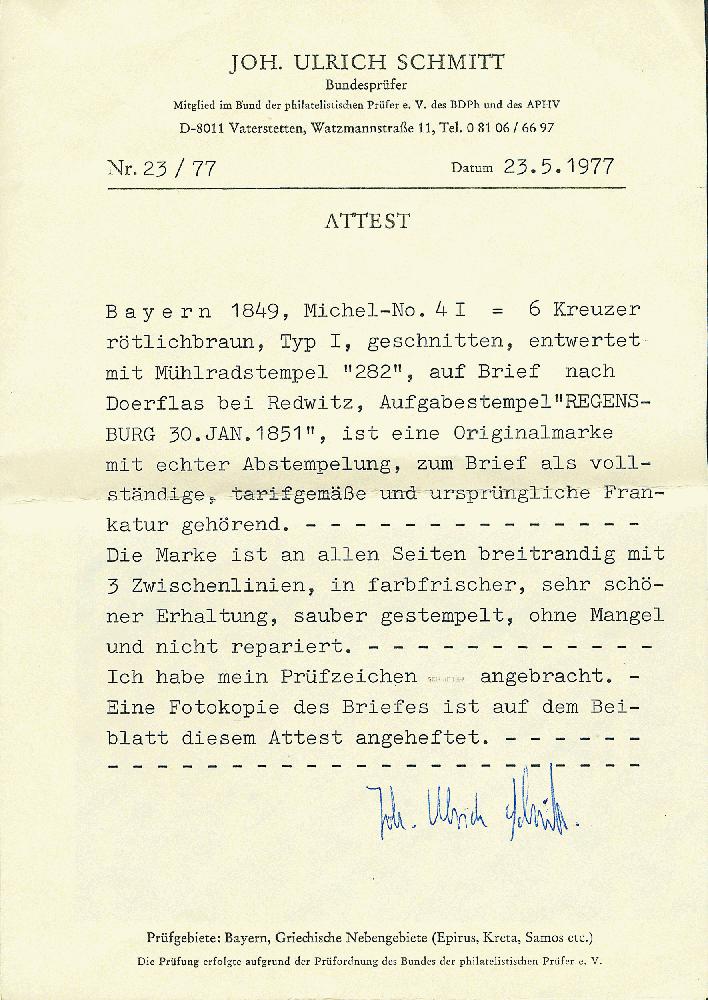 | Prüfer: | Schmitt, Joh. Ulrich (BPP (Bund Philatelistischer Prüfer)) |