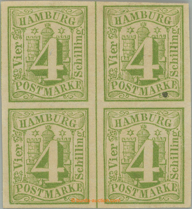| Zusatzinformationen und Suchstichworte: | Burda 72. Auktion 16. - 17. September 2023 Los 130 Altdeutschland Hamburg 1859 Mi. 5a, Ziffern 4S gelbgrün, Viererblock; ohne Gummi, hell Schrägstrich Knick, Attest RPSL, seltene Verwendung, c. v. 300EUR Ausruf 86,00 EUR |