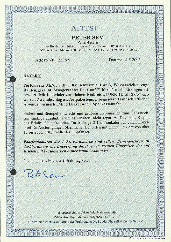 | Prüfgebiet: | Altdeutschland Bayern Portomarken |