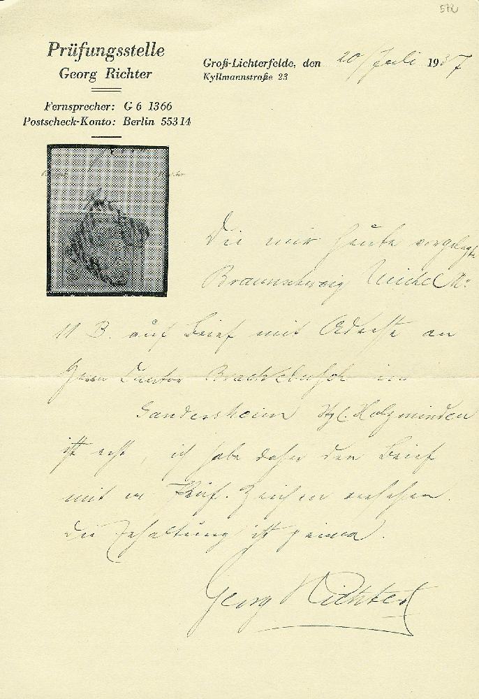 | Zusatzinformationen und Suchstichworte: | Dr. Derichs 173. Auktion 4. November 2023 Los 607 Altdeutschland Braunschweig 1 Silbergroschen schwarz auf gelb, bogenförmiger Versuchsdurchstich, ringsum einwandfreier Durchstich, dieser oben und rechts "innerhalb" mit Teilen der oberen und rechten Nachbarmarke, auf kleinem Brief mit Nummernstempel "24." und Aufgabe-Ra2 "Holzminden 2/11" nach Gandersheim mit rückseitigem blauen Ra2 "Gandersheim". Luxus. Auf Brief eine der großen Altdeutschland-Seltenheiten. Fotoattest Georg Richter (1937), Fotoattest Brettl BPP und Fotoattest Lange BPP: "Die Erhaltung ist in frischer Farbe und einwandfrei. Versuchsdurchstiche von Braunschweig, besonders auf Brief, sind sehr selten und gehören zu den Raritäten von Braunschweig.". (Michel 11.000.-) Ausruf 3.500,00 EUR |