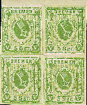 | Zusatzinformationen und Suchstichworte: | Dr. Derichs 173. Auktion 4. November 2023 Los 615 Altdeutschland Bremen 5 Silbergroschen dunkelolivgrün, Viererblock vom Oberrand, dieser 3,5mm breit, auch an den anderen drei Seiten voll- bis breitrandig bzw. meist sogar mit Zwischenlinien, völlig postfrisch in Luxus-Qualität. Mit für diese Marke typischer, zweifach aufgetragener Gummierung, diese einmal transparent und einmal bräunlich. Ein vor allem in dieser excellenten Qualität seltenes Blockstück Ausruf 500,00 EUR |