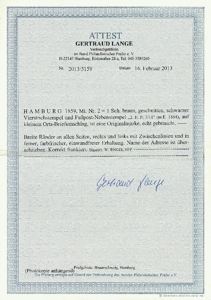 | Prüfer: | Lange, Gertraud (BPP (Bund Philatelistischer Prüfer)) |