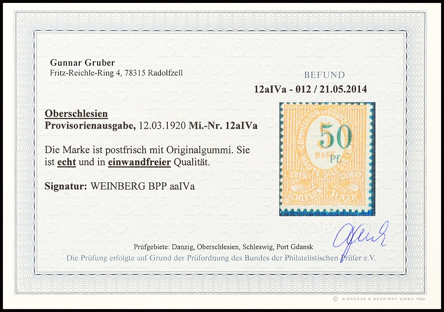 | Prüfer: | Gruber, Gunnar (BPP (Bund Philatelistischer Prüfer)) |