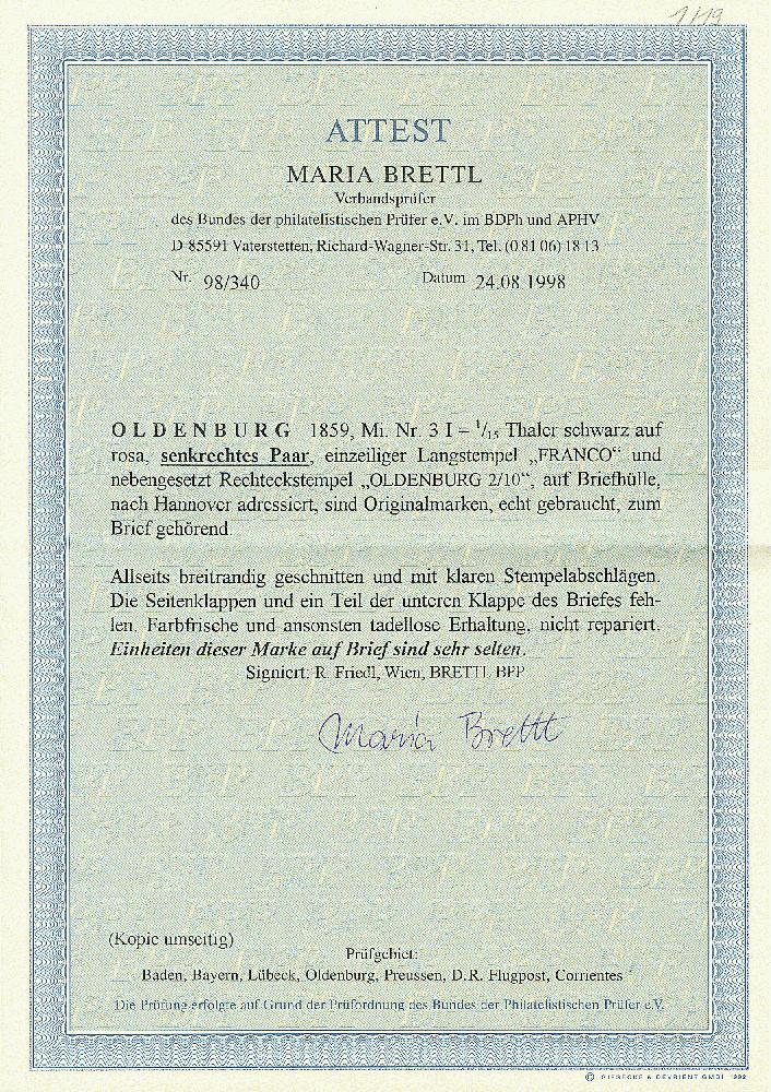 | Prüfgebiet: | Altdeutschland Oldenburg |