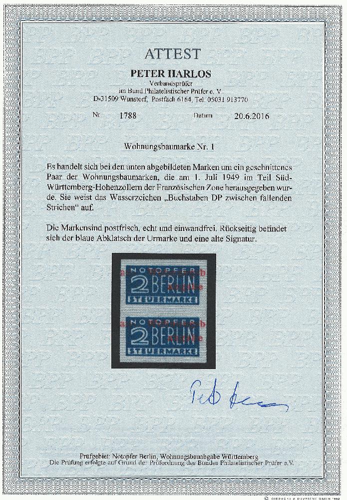 | Prüfgebiet: | Alliierte Besetzung Notopfer- und Wohnungsbaumarken |