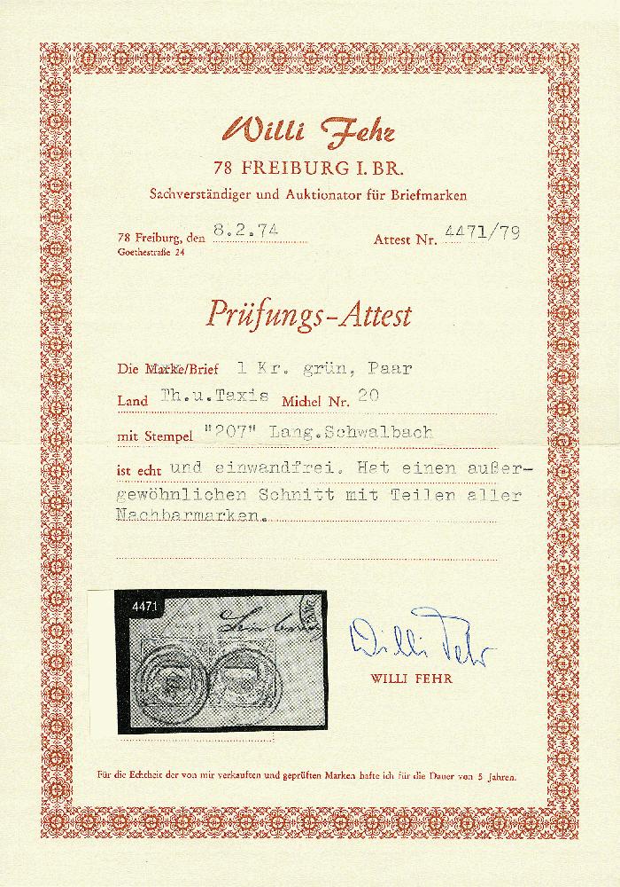 | Prüfgebiet: | Altdeutschland Thurn und Taxis |
