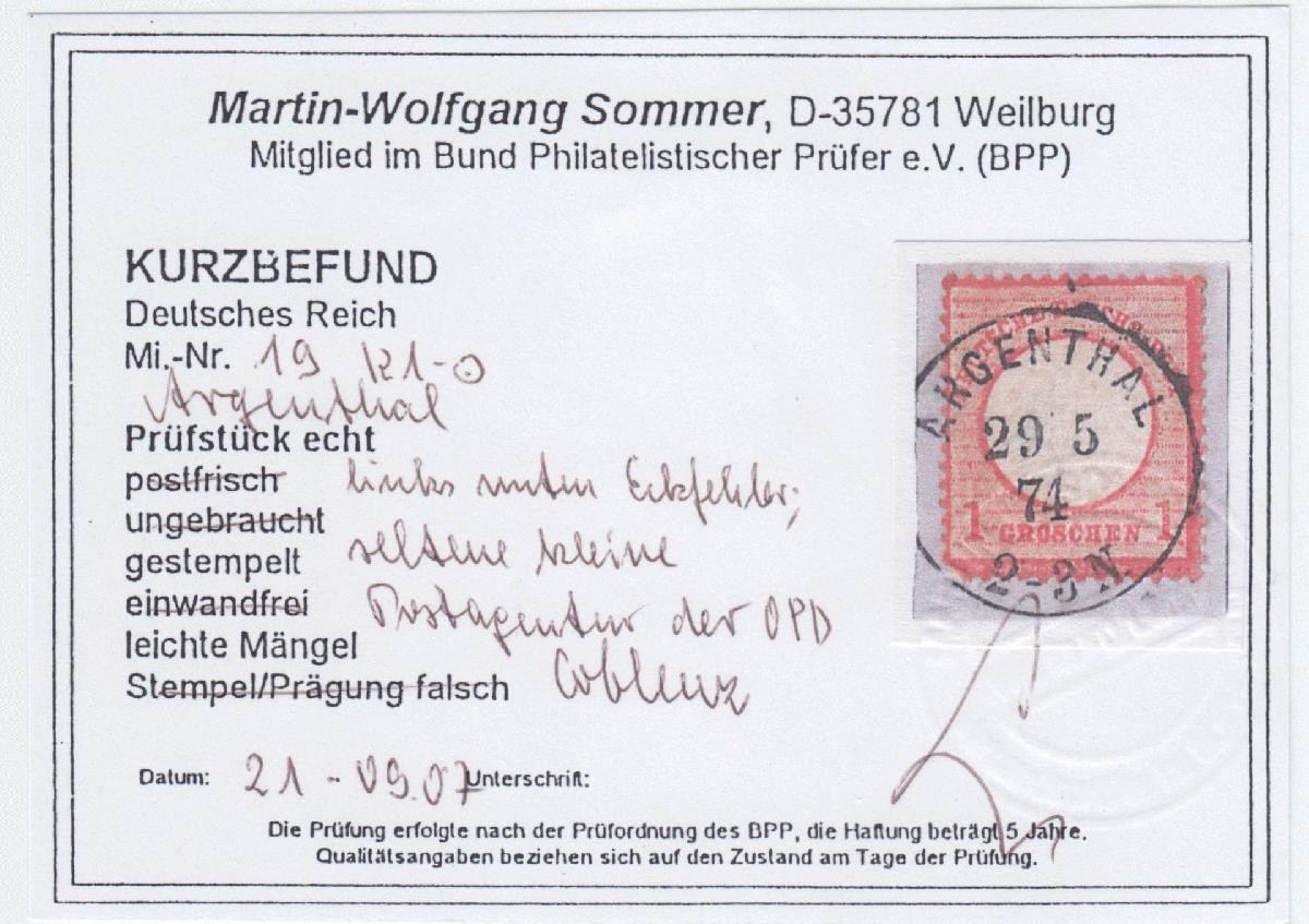 | Zusatzinformationen und Suchstichworte: | Frühdatum Kreisstempel Argenthal, Katalog "Neue Deutsche Reichspostorte" Nr. 019 |
