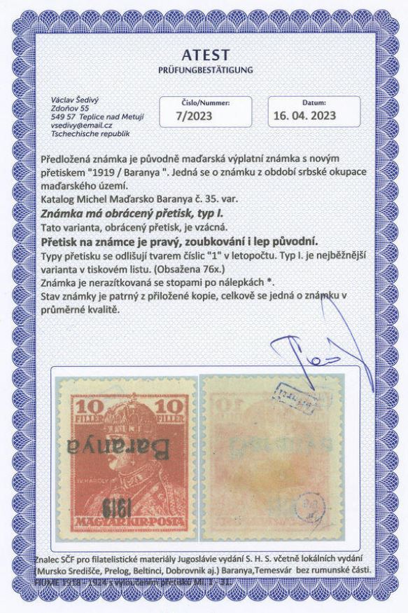 | Zusatzinformationen und Suchstichworte: | Ein ungebrauchtes Exemplar mit Attest dieses Kopfstehers wurde an der 72. Burda Auktion vom 16. September 2023 in Prag/Tschechien unter Los 101 für 5000 CZK (ca. 205 €) angeboten, blieb jedoch unverkauft. |