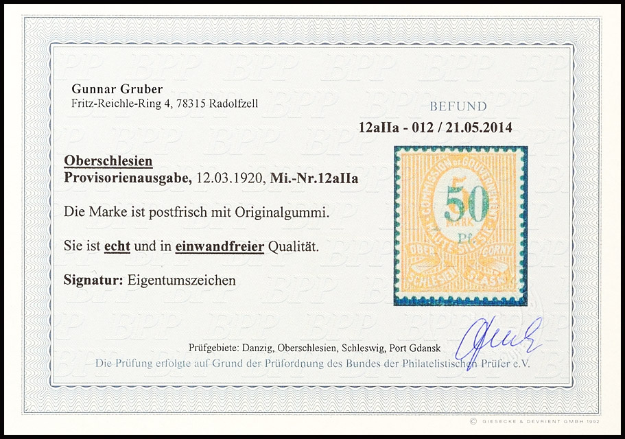 | Prüfer: | Gruber, Gunnar (BPP (Bund Philatelistischer Prüfer)) |