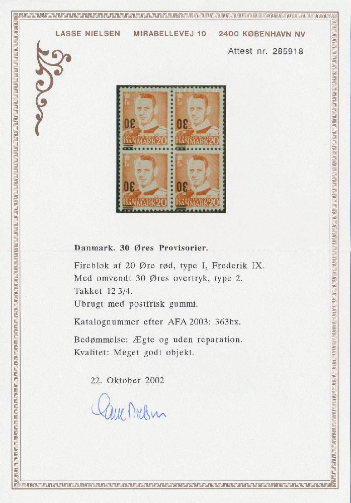 | Zusatzinformationen und Suchstichworte: | Ein postfrischer Viererblock dieses Kopfstehers mit Attest wurde an der 239. Postiljonen Auktion vom 27 September 2023 in Malmö/Schweden unter Los 631 für 1‘000 € + Aufgeld verkauft. |