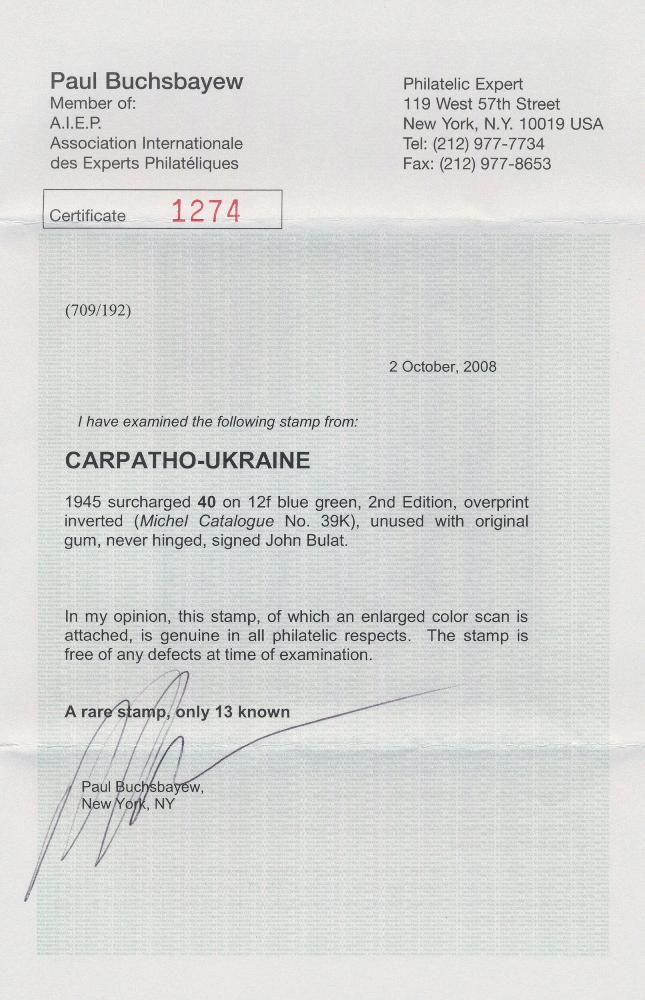 | Prüfer: | Buchsbayew, Paul (AIEP (Association internationale des experts en philatélie)) |
