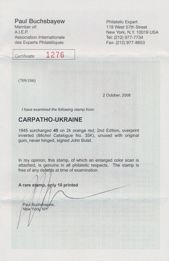 | Prüfer: | Buchsbayew, Paul (AIEP (Association internationale des experts en philatélie)) |