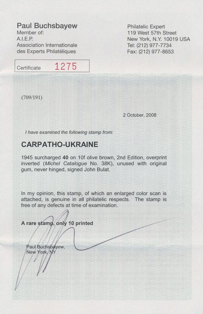 | Prüfer: | Buchsbayew, Paul (AIEP (Association internationale des experts en philatélie)) |