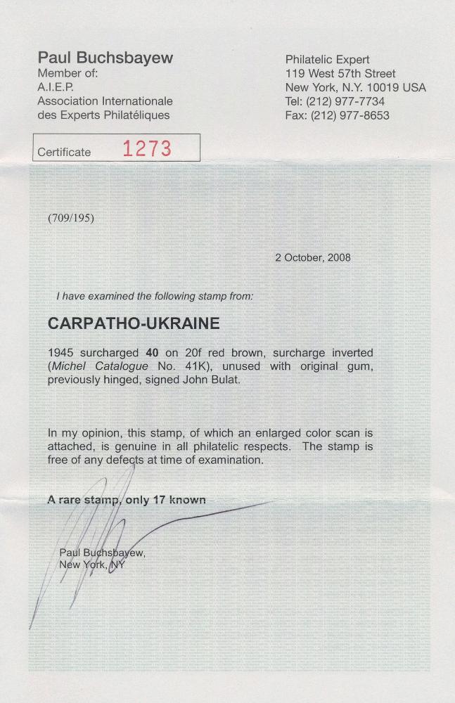 | Prüfer: | Buchsbayew, Paul (AIEP (Association internationale des experts en philatélie)) |