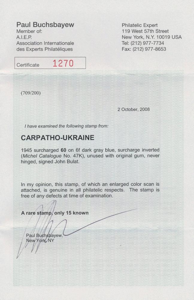 | Prüfer: | Buchsbayew, Paul (AIEP (Association internationale des experts en philatélie)) |