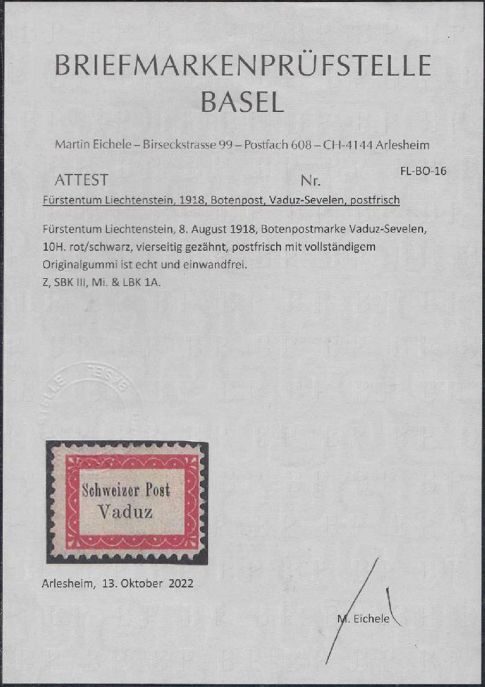 | Zusatzinformationen und Suchstichworte: | 111. Briefmarken Lenz Auktion 6. - 9. November 2023 Los 729 Liechtenstein Gemeindebotenpost Vaduz-Sevelen 1918, 10 H. Botenpost, Echt und Einwandfrei, Attest Briefmarkenprüfstelle Basel, Mi.1.300,- Ausruf 350,00 EUR |