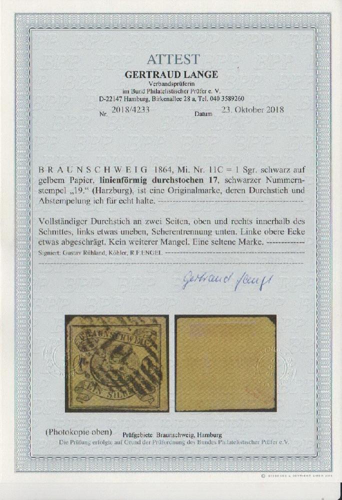 | Zusatzinformationen und Suchstichworte: | Rauhut & Kruschel - 221. Auktion 8. Dezember 2023 Los 479 Altdeutschland Braunschweig 1 Sgr. schw./gelb, der seltene linienförmige Versuchs-Durchstich "17" an allen vier Seiten, davon zweiseitig sehr gut meßbar innerhalb der Scherentrennung, unten und links typisch etwas unregelmäßig. Ausser einer etwas schrägen Ecke links oben sowie etwas Scherentrennung unten sehr gute Gesamterhaltung dieser seltenen Marke, klar gestempelt mit NS "19" von Harzburg, Mi. 7000,- Ausruf 800,00 EUR |