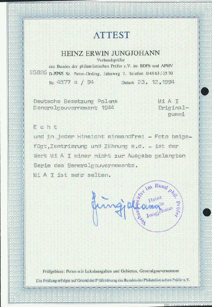 | Prüfer: | Jungjohann, Heinz Erwin (BPP (Bund Philatelistischer Prüfer)) |