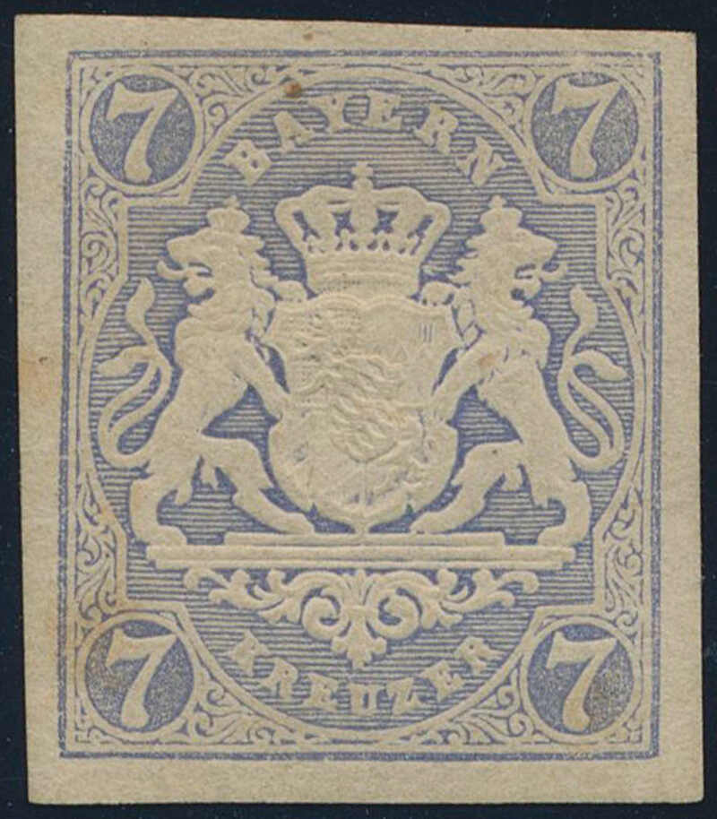 | Zusatzinformationen und Suchstichworte: | 82. HBA Auktion 9. - 11. November 2023 Los 23 Altdeutschland Bayern 1873, Wappen, 7 Kr., hellultramarin, als Neudruck für Ausstellungszwecke der Weltausstellung 1873, allseits vollrandig geschnitten, sauber ungebrauchtes Kabinettstück, statt eines Seidenfadens wurde rückseitig ein roter Tintenstrich angebracht, Altsign., gepr. Schmitt und gepr. Sem mit neuem Fotobefund, Mi. 500,-- Ausruf 150,00 EUR |