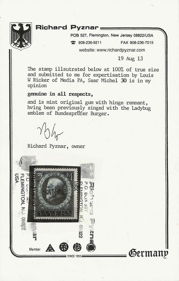 | Prüfgebiet: | Saargebiet (Mi-Nr. 1 - 205) |