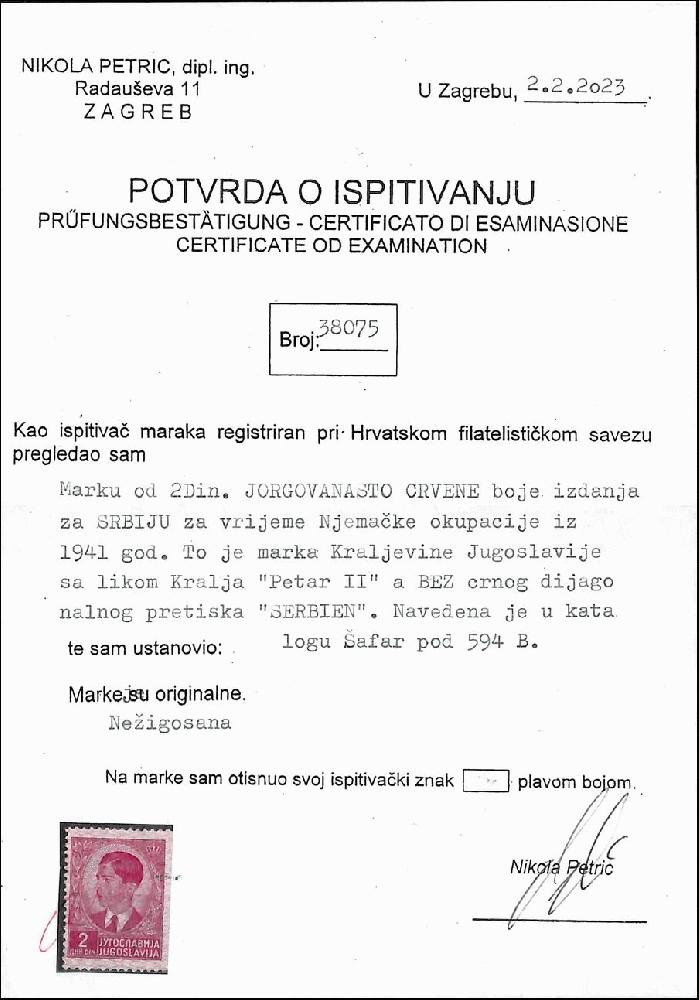 | Prüfgebiet: | Deutsche Besetzung WK 2 Serbien |