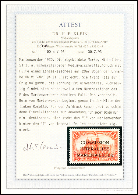 | Prüfer: | Klein, Udo E. (BPP (Bund Philatelistischer Prüfer)) |