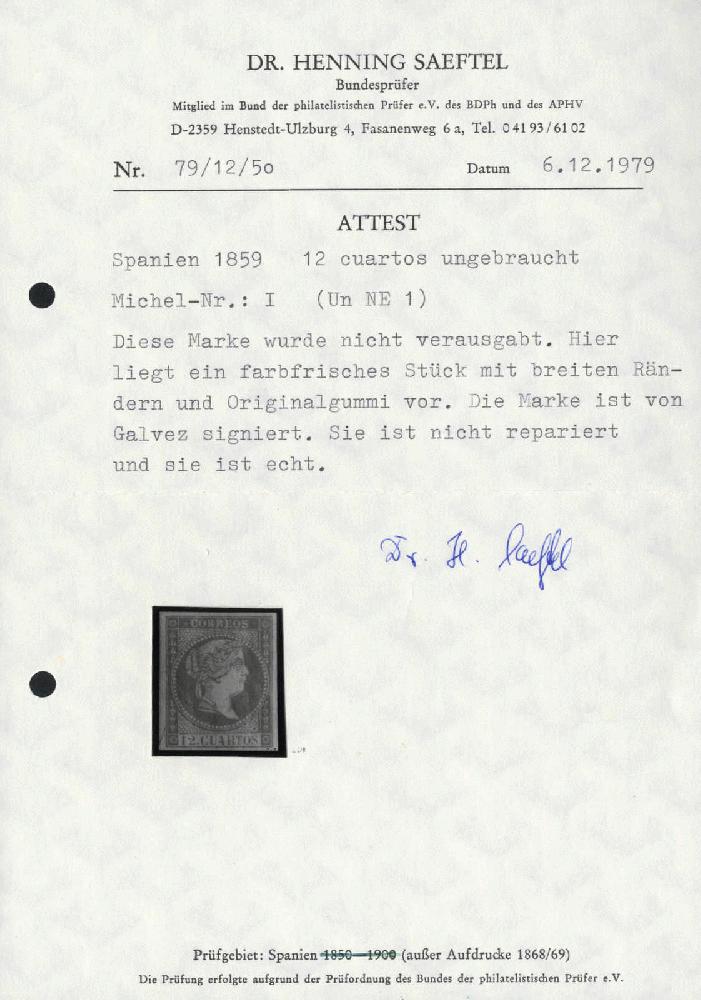 | Zusatzinformationen und Suchstichworte: | Viennafil 83. Live-Auktion 21. - 23. November 2023 Los 2209 Spanien 1859, 12 Cs. rotorange, nicht verausgabt, postfrisches und ringsum breitrandiges Exemplar in einwandfreier Erhaltung, sign. Galvez und Attest Saeftel (Mi. I) Ausruf 60,00 EUR |