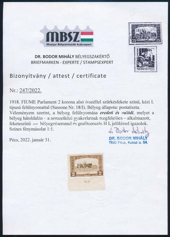 | Zusatzinformationen und Suchstichworte: | 41. Darabanth Auktion 4. November 2023 Los 303 Fiume Fiume 1918 Parlament 2K Hp I. Certificate: Bodor (Sassone EUR 2.200,-) (betapadásnyomok / gum disturbances) Ausruf 80.000,00 HUF |