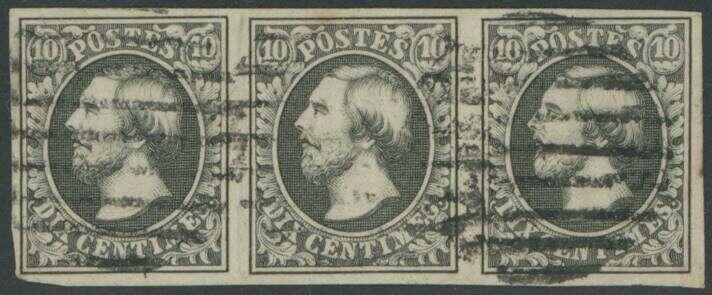 | Zusatzinformationen und Suchstichworte: | Ulrich Felzmann 179. Auktion 15. - 16. November 2023 Los 1292 Luxemburg 10 C schwarz, Auflage 1855, Druck Barth-Wahl, im waagerechten Dreierstreifen, farbfrisch und ringsum vollrandig mit sauberen Balkenstempeln von LUXEMBOURG in Prachterhaltung, rs. Tintenspiegel etwas durchschimmernd, Ausruf 250,00 EUR |