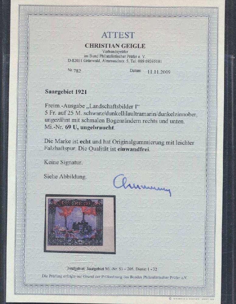 | Prüfgebiet: | Saargebiet (Mi-Nr. 1 - 205) |