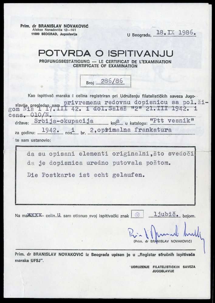 | Prüfgebiet: | Deutsche Besetzung WK 2 Serbien |