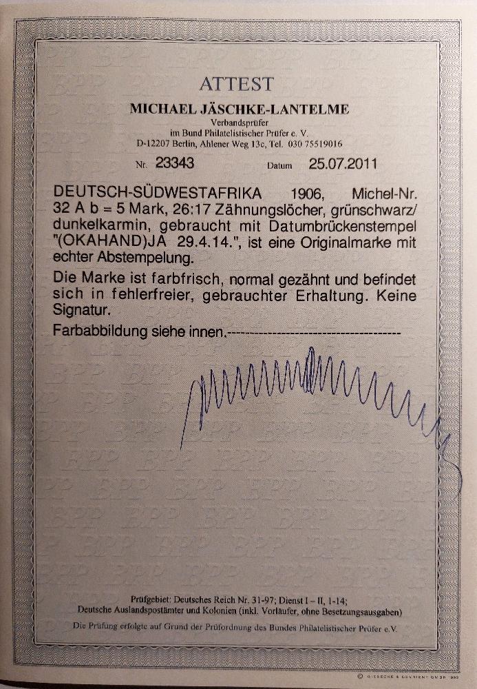 | Prüfer: | Jäschke-Lantelme, Michael (BPP (Bund Philatelistischer Prüfer)) |