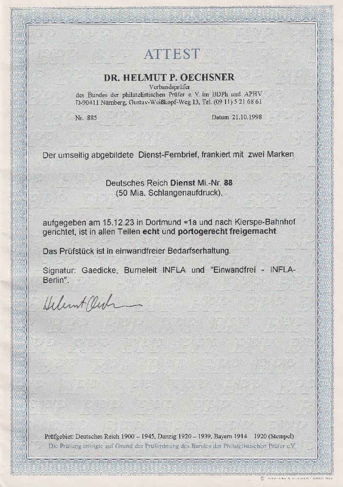 | Prüfgebiet: | Deutsches Reich Dienstmarken 1874 - 1945 |