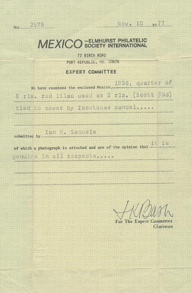 | Prüfer: | MEPSI, Mexico Elmhurst Philatelic Society Inter (Prüferkommission) |