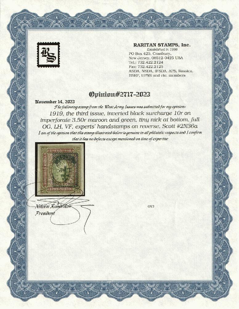 | Zusatzinformationen und Suchstichworte: | Oldlouis 34. Auktion - Teil 3 - Russia & Soviet Union 26. - 29. Dezember 2023 Los 3844 Sowjetunion 1919 10r on 3.5r West Army, Russia, Civil War (Kr. 36 Tc, Inverted Overprint, Rare, Certificate, Signed, CV $350). 1919 10 R. auf 3,5 R. Westarmee, Russland, Bürgerkrieg (Kr. 36 Tc, kopfstehender Aufdruck, selten, Attest, signiert, CV $350). Ungebraucht leicht gefalzt Ausruf 45,00 USD |