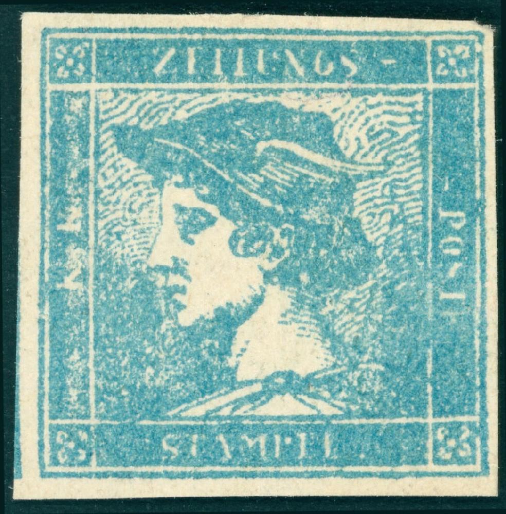 | Zusatzinformationen und Suchstichworte: | Stampcurio 1. Auktion 1. Januar 2024 Los 212 Österreich 1851 Österreich blau Merkur ungebraucht ohne Gummi Ib type mit "geripptes" Papier Fercbenbauer 135 EUR Ausruf 35,00 EUR |