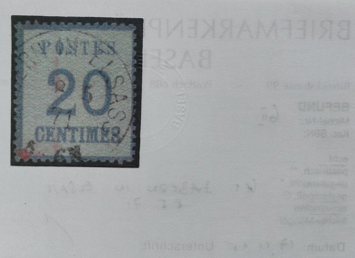 | Prüfgebiet: | Norddeutscher Postbezirk 1870 - 1871 Elsass-Lothringen |