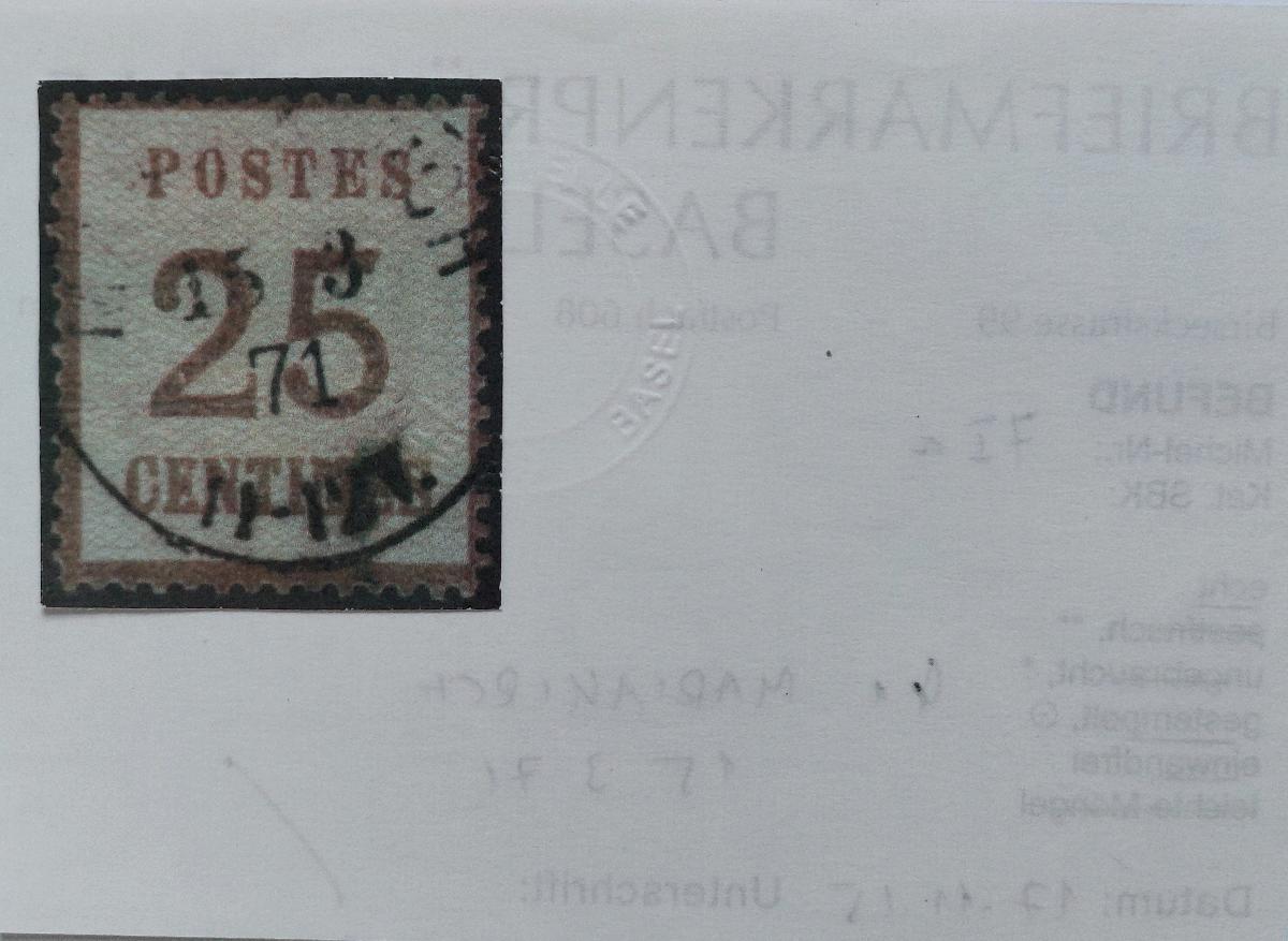 | Prüfgebiet: | Norddeutscher Postbezirk 1870 - 1871 Elsass-Lothringen |