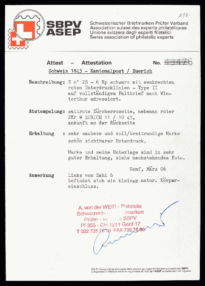 | Prüfer: | von der Weid, Alain (SBPV / ASEP (Schweizerischer Briefmarken-Prüfer-Verband)) |